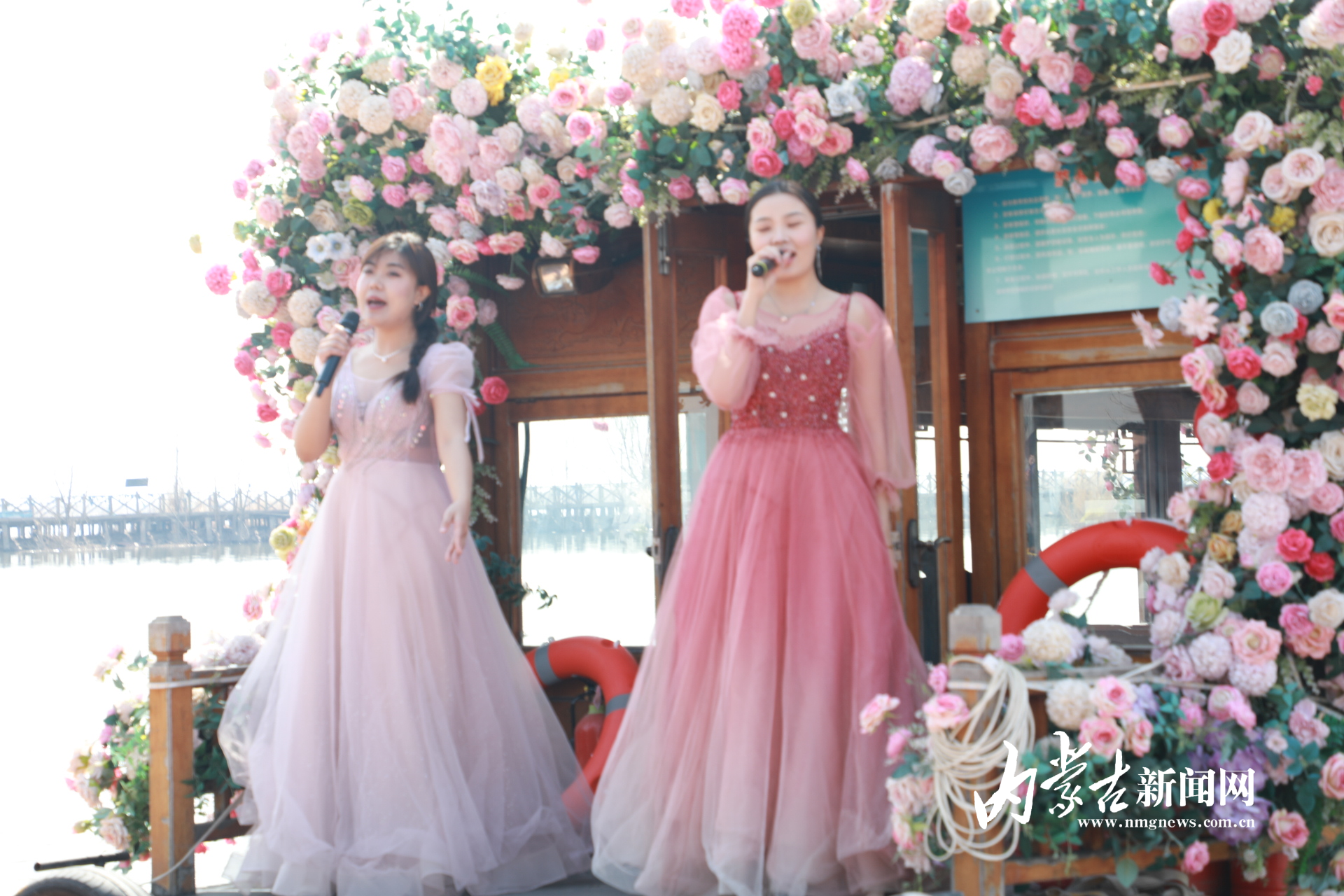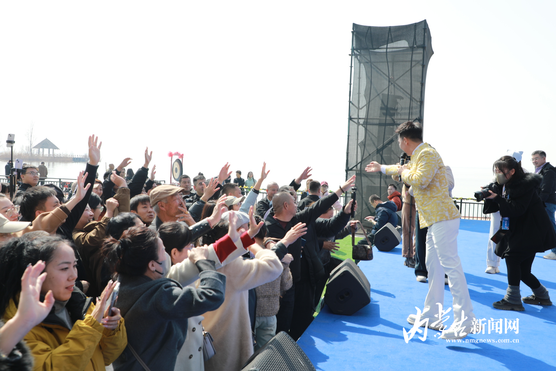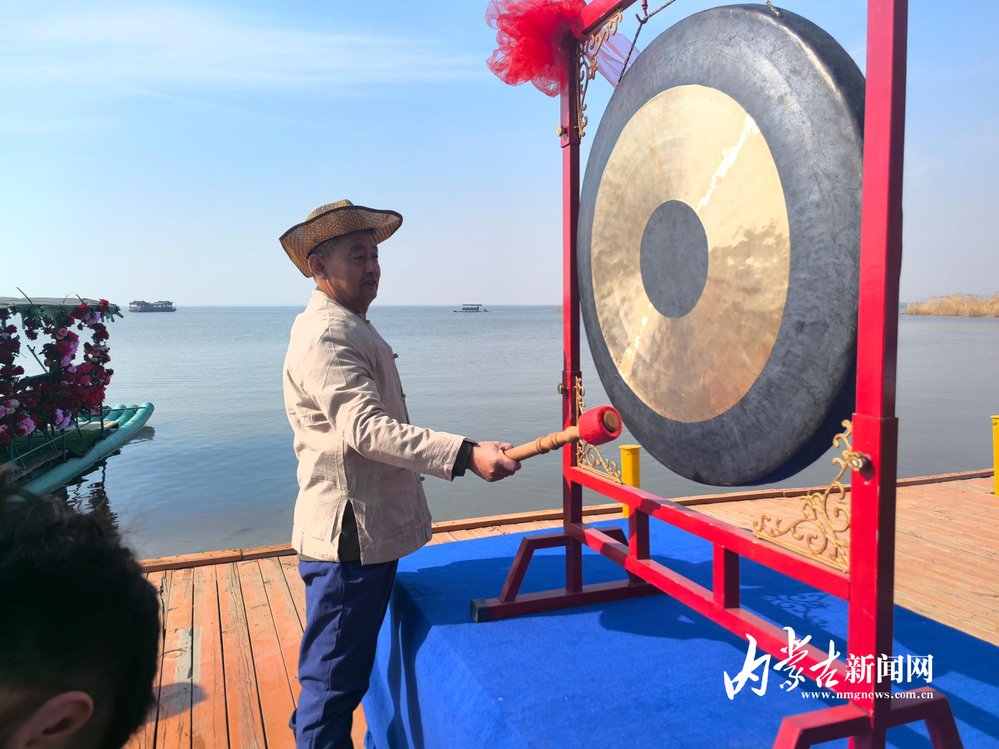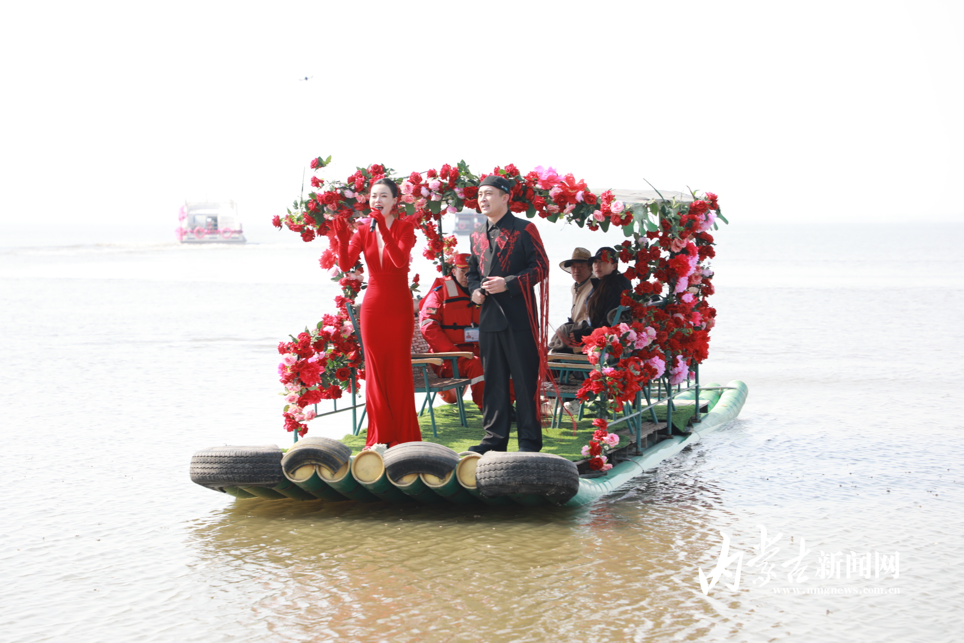 當日10時30分,開幕式在歡快的群舞《奈日》中拉開帷幕。值得一提的是,今年的歌舞表演帶來了全新的沉浸式體驗:烏蘭牧騎的演員們乘船泛舟湖面,在碧水間緩緩駛來。經(jīng)典歌曲《天下黃河九十九道彎》《哈素海我的故鄉(xiāng)》接連上演,悠揚的歌聲由遠及近,伴著水波飄蕩,與船上的舞蹈相得益彰,不僅展現(xiàn)了土默特左旗的民俗風情,更讓游客在湖光山色中盡享視覺與聽覺的雙重盛宴。