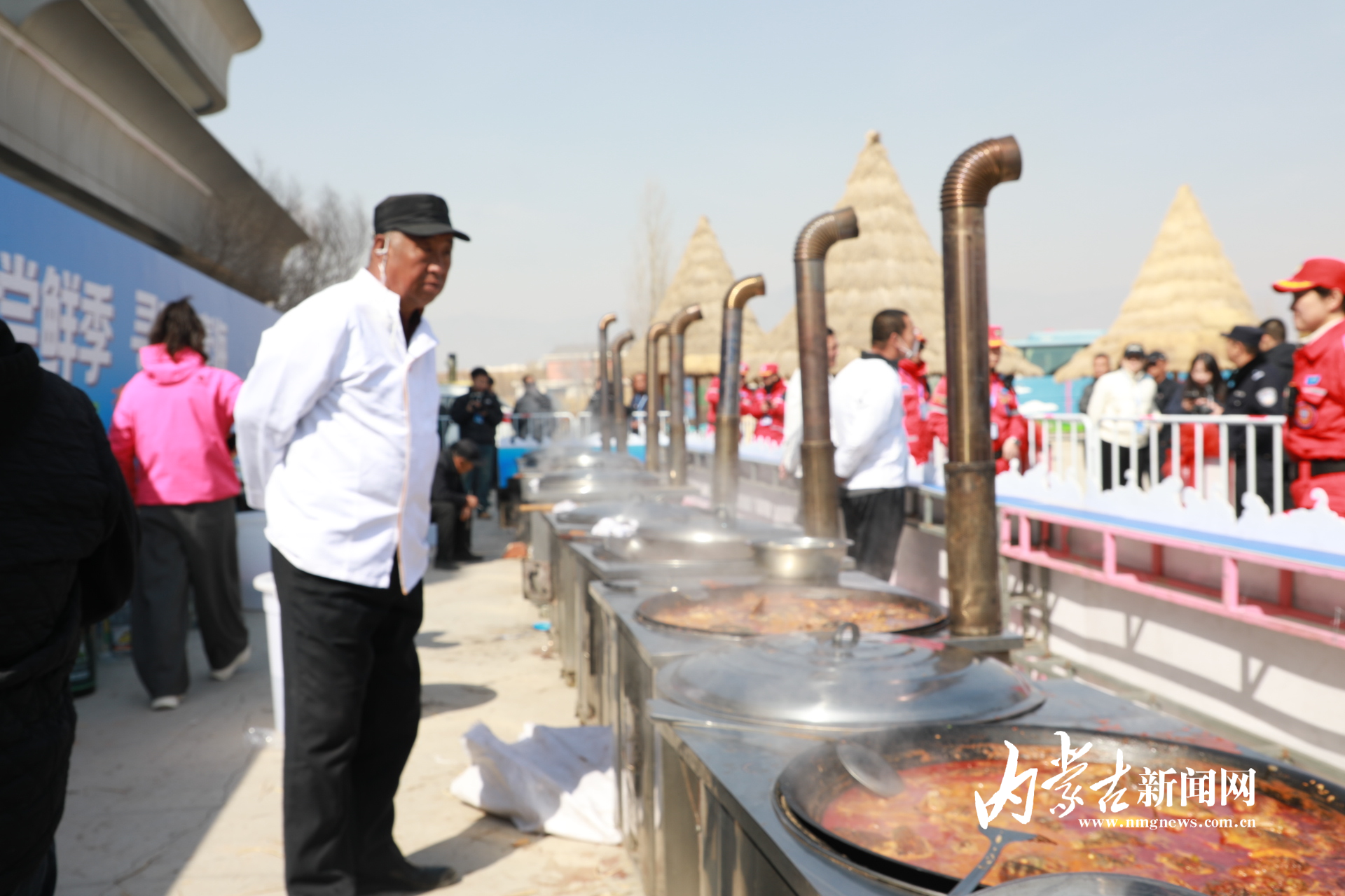 碼頭另一邊,八口大鍋一字排開,熱氣騰騰。農(nóng)家樂大廚各展絕技,慢火煨燉開河魚,鮮香四溢。游客們排隊免費品嘗,第一時間解鎖春日鮮味,直呼“地道、過癮”。